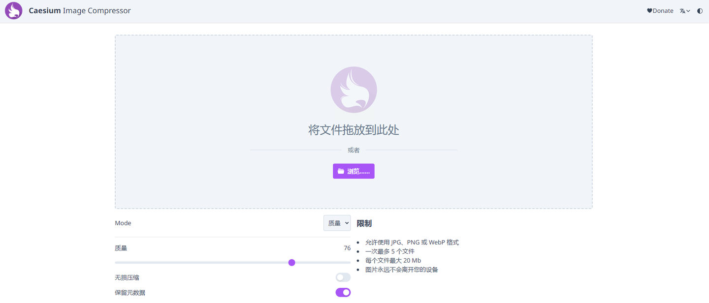 1. 打开与操作:通过搜索引擎找到CAESIUM官网(注意选择带"https"的正规网站),进入后界面分为"拖放区"和"设置区"。
