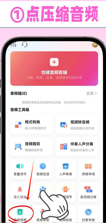 通常在首页或工具页就有“压缩音频”的入口,点进去。