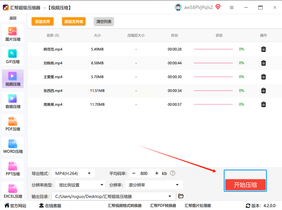 所有设置都调好了?检查一遍,没问题的话,就点击那个醒目的“开始压缩”按钮。这时候你会看到进度条在走,稍微等一会儿。压缩速度取决于视频数量和大小,一般几分钟就能搞定。