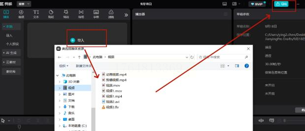 打开剪映专业版,点击“开始创作”。把要压缩的视频导入进来,你可以导入多个,在素材库里都能看到。