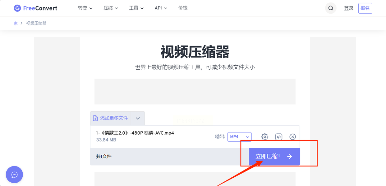 打开网站,一眼就能看到“视频压缩”功能。点击进入,直接就是上传界面。