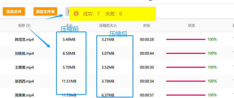 完成后,软件会弹出“任务完成”的提示。你可以直接看到每个视频压缩前后的大小对比,节省了多少空间一目了然。