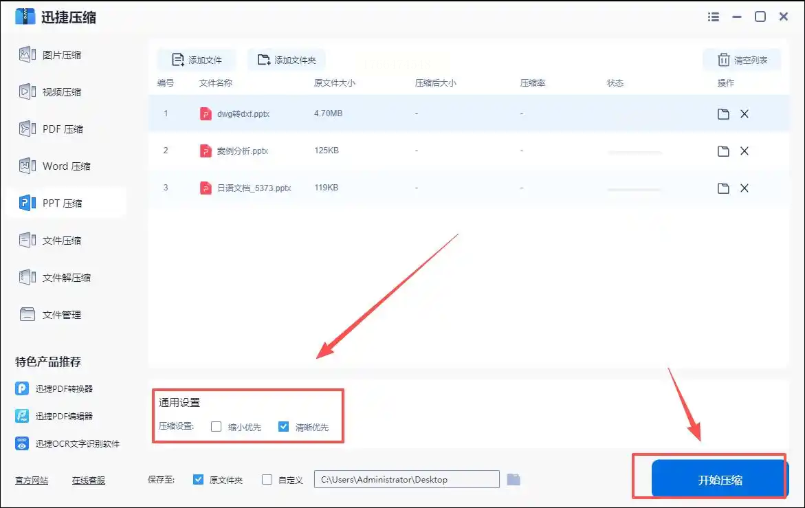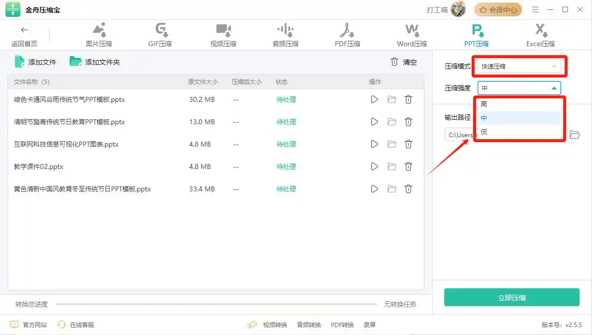 1. 功能定位:集成多种格式压缩功能,操作界面简洁直观,适合快速处理单个或批量PPT文件。