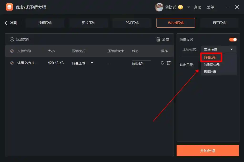 按照网站指引,将本地的Word文档上传至服务器。大多数在线工具会提供简单的压缩等级选项(如“标准压缩”、“强力压缩”),让您进行选择。