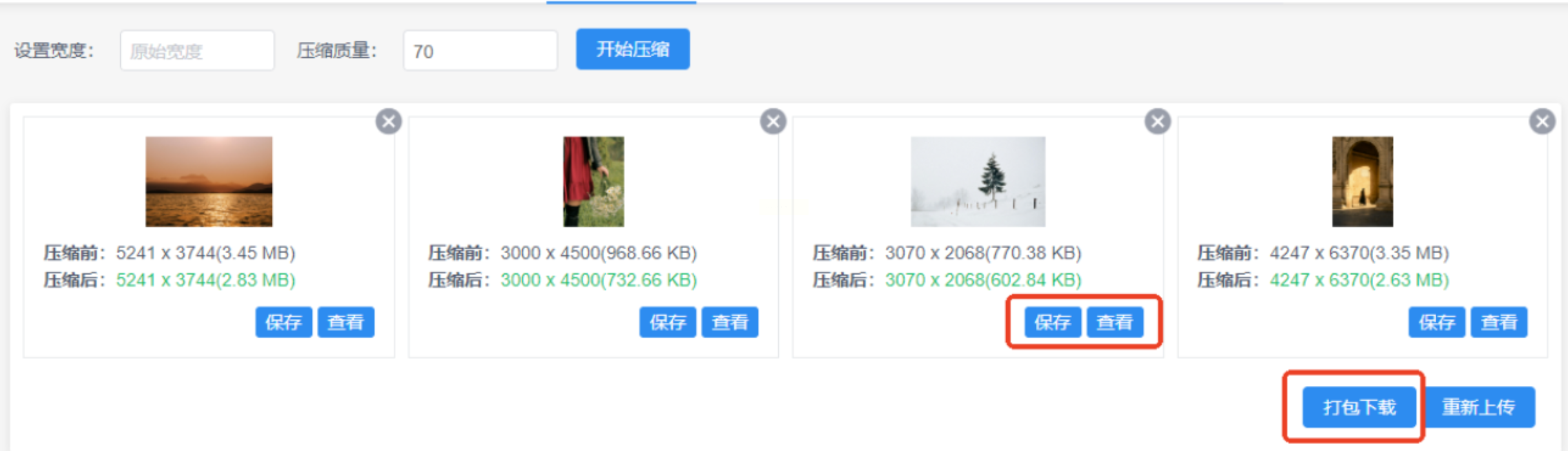 4. 点击“开始压缩”:等待几秒后,点击“下载图片”保存到电脑