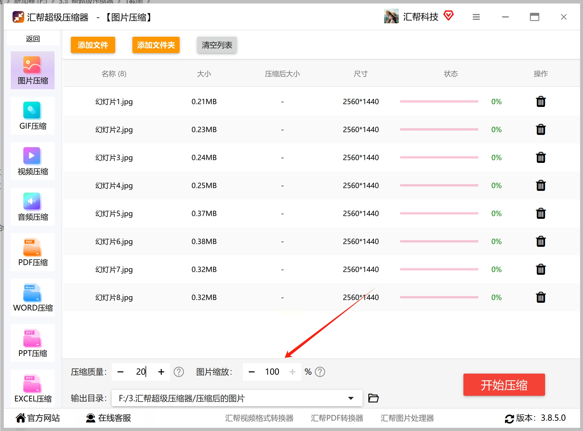 确认所有设置无误后,点击【开始压缩】按钮,软件就会按照你的设置处理图片。处理时间会根据图片数量和大小有所不同,通常单张图片只需几秒钟。