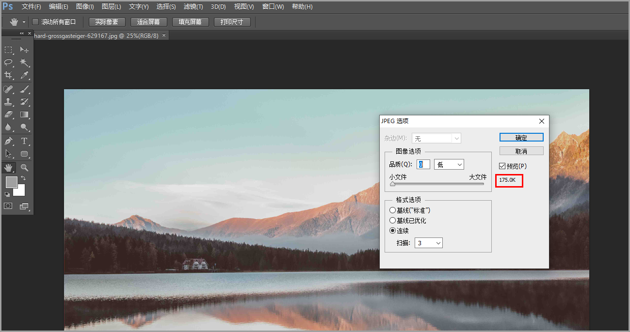如果你电脑上已经安装了这款专业的图像处理软件,用它来压缩图片非常方便,尤其适合需要对压缩参数进行精确控制的用户。