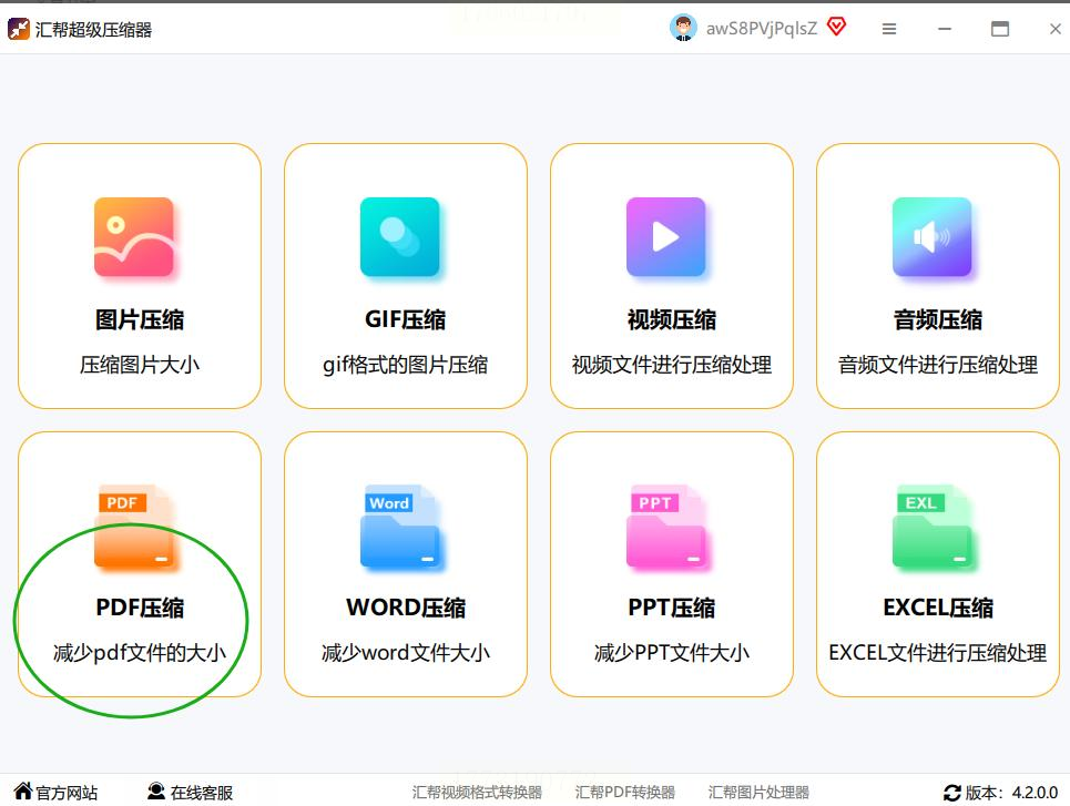 在首页找到“文件压缩”→“PDF压缩”,点击进入专门的压缩页面。