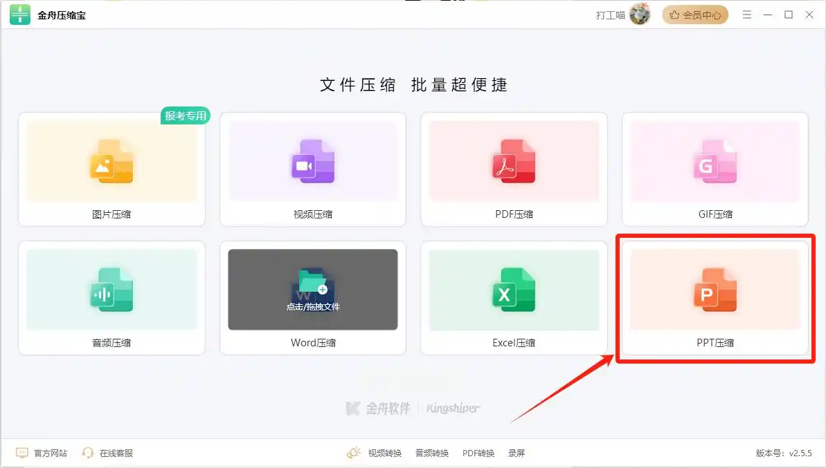 打开汇帮超级压缩器后,在主界面左侧导航栏中选择“PPT压缩” 分类,该模块专门针对演示文稿优化,支持批量处理与格式兼容性校验。此界面设计直观,将复杂参数简化为“导入-设置-导出”三步流程,适合非技术用户快速上手。