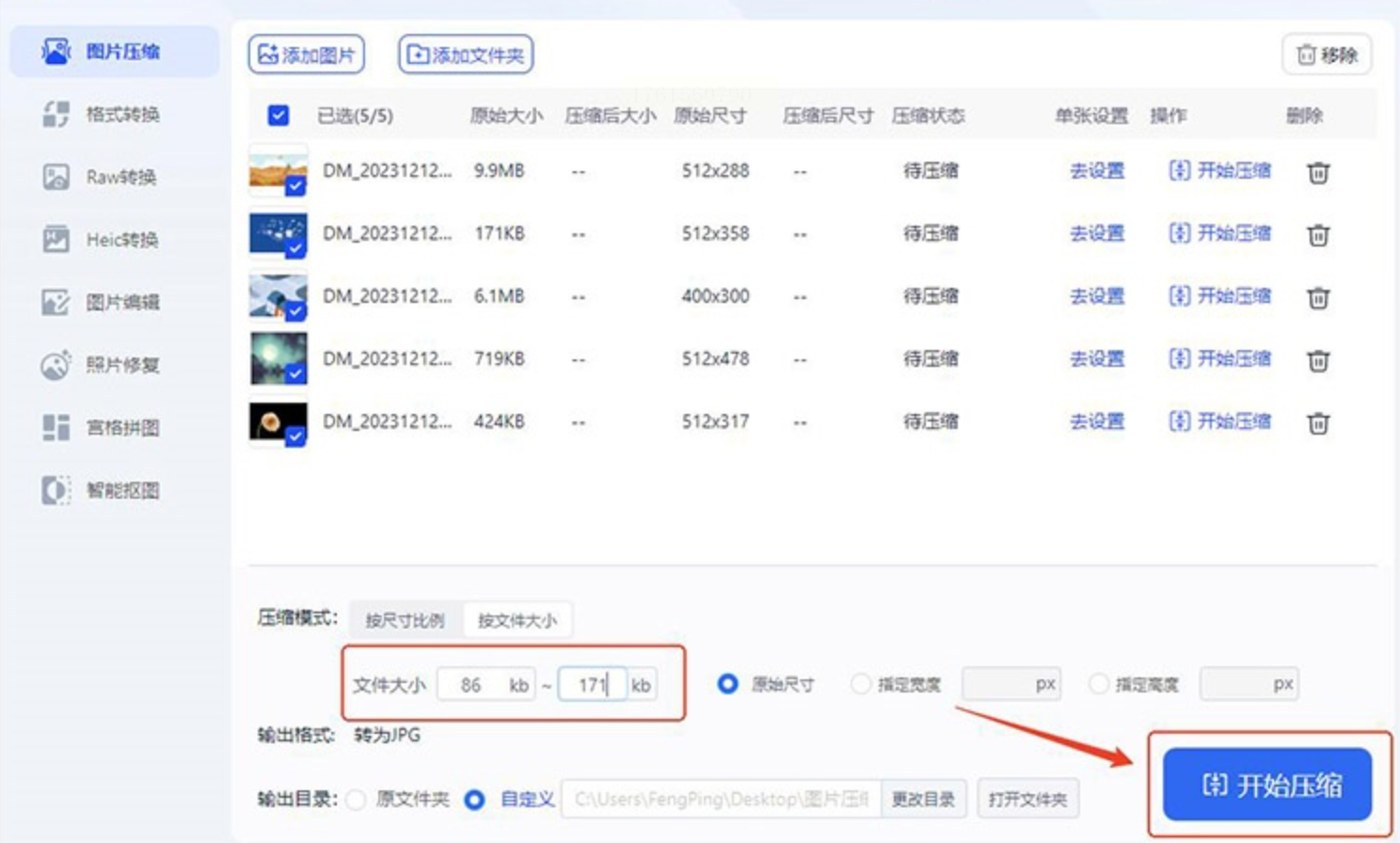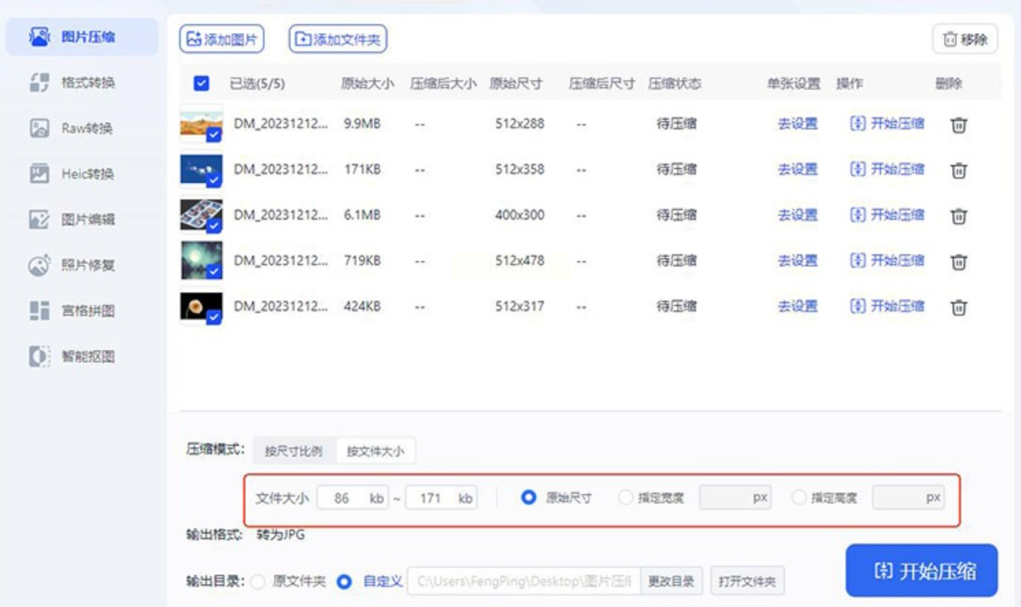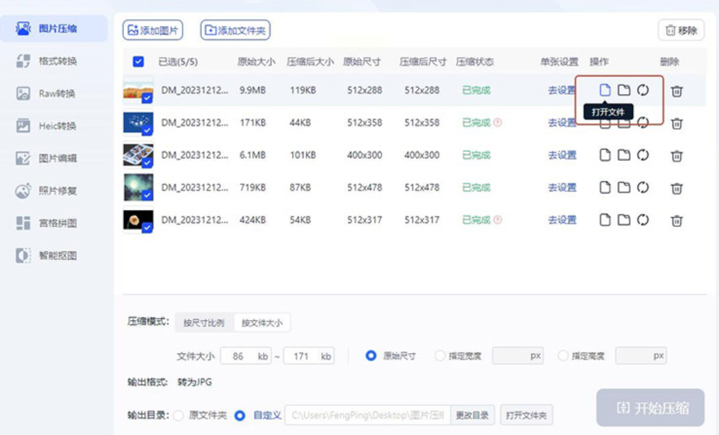 4. 预览效果:压缩完后会弹出预览窗口,你可以对比原图和压缩图的大小,确认无误就点“开始压缩”,保存到指定文件夹就完事了!