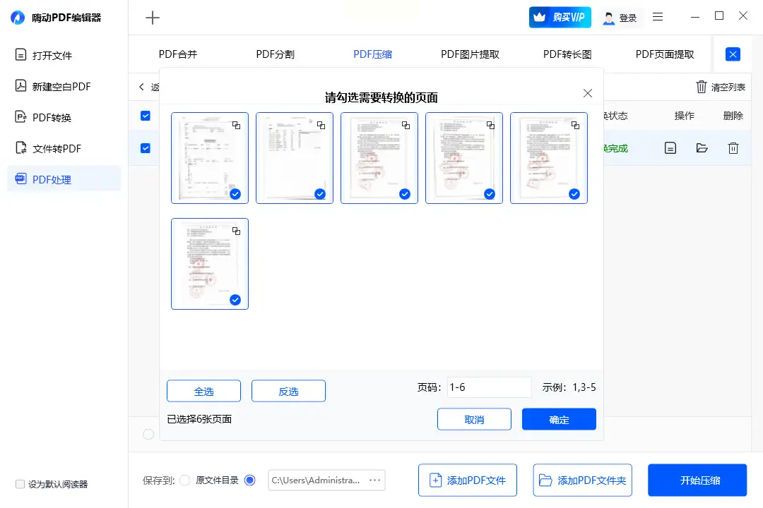 步骤三:如需仅压缩特定页面,可在文件列表中找到“页码选择”或“页面范围”设置,勾选需要处理的页面。