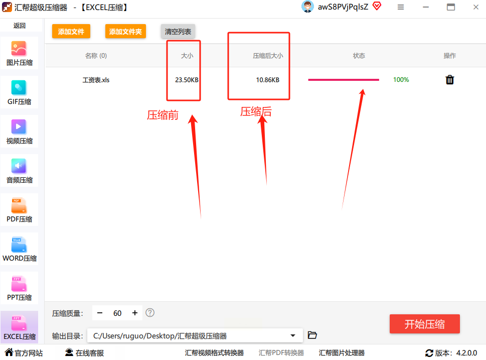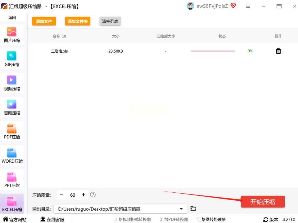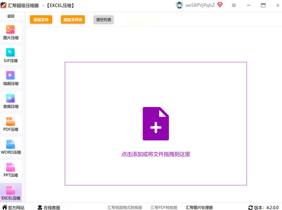 1. 启动软件:打开《汇帮超级压缩器》后,在主界面左侧功能栏找到"Excel压缩"模块。该软件的优势是专门针对表格文件优化,压缩过程中能智能保留图表清晰度和公式逻辑。