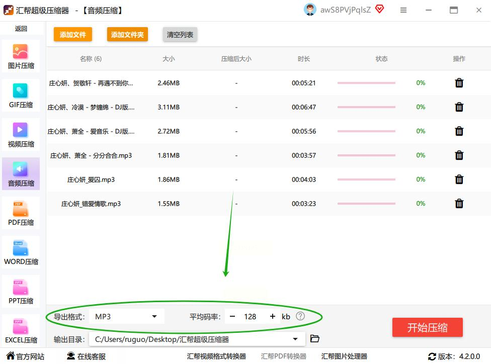 - 比特率:选「128kbps」(语音类选这个足够,音乐可能要选192kbps)