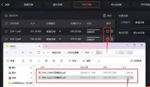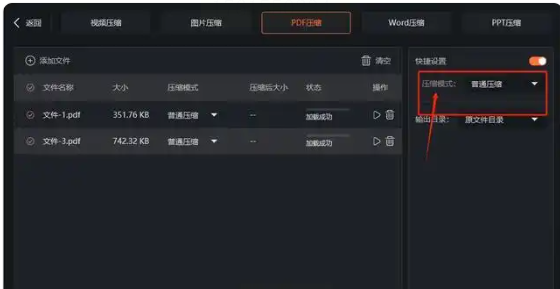 4. 开始批量压缩:点"开始压缩",软件会自动处理所有PDF文件,生成新的压缩文件。