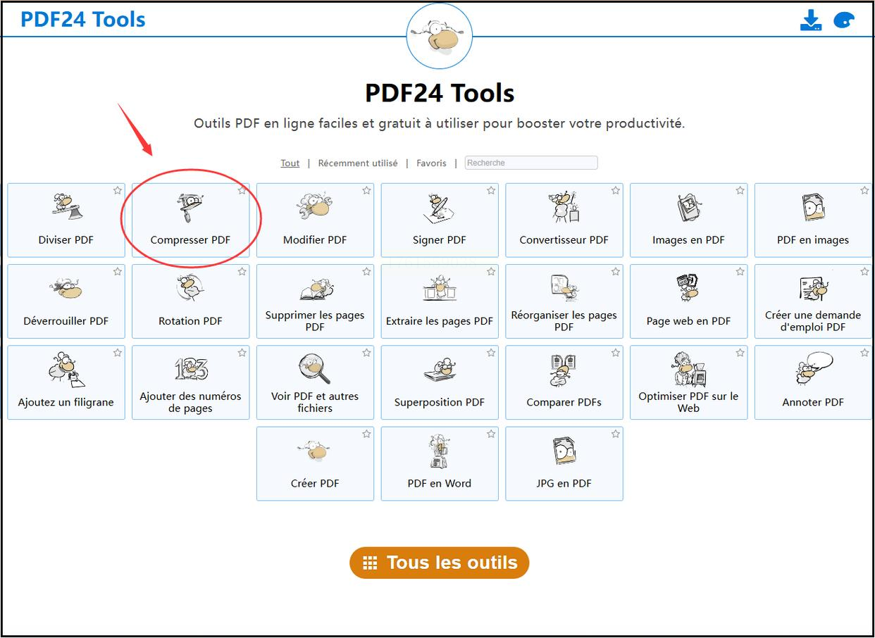 1. 在电脑浏览器里搜索并打开PDF24 Tools的网站,找到“Compresser PDF”功能。
