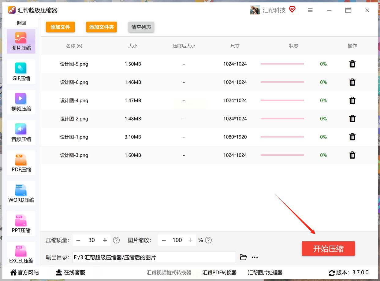5. 点“开始压缩”,进度条走完就大功告成,去目标文件夹看成果