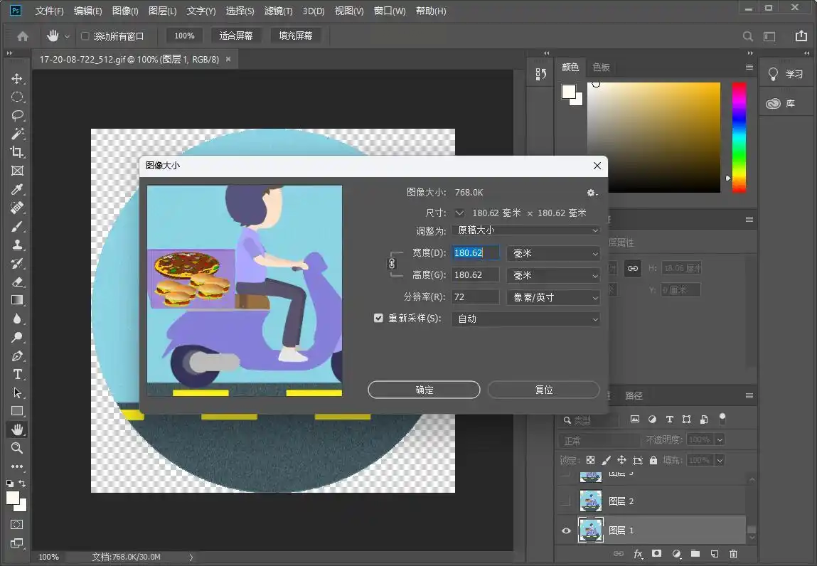 点击顶部菜单“Image > Image Size”,在弹出窗口中: