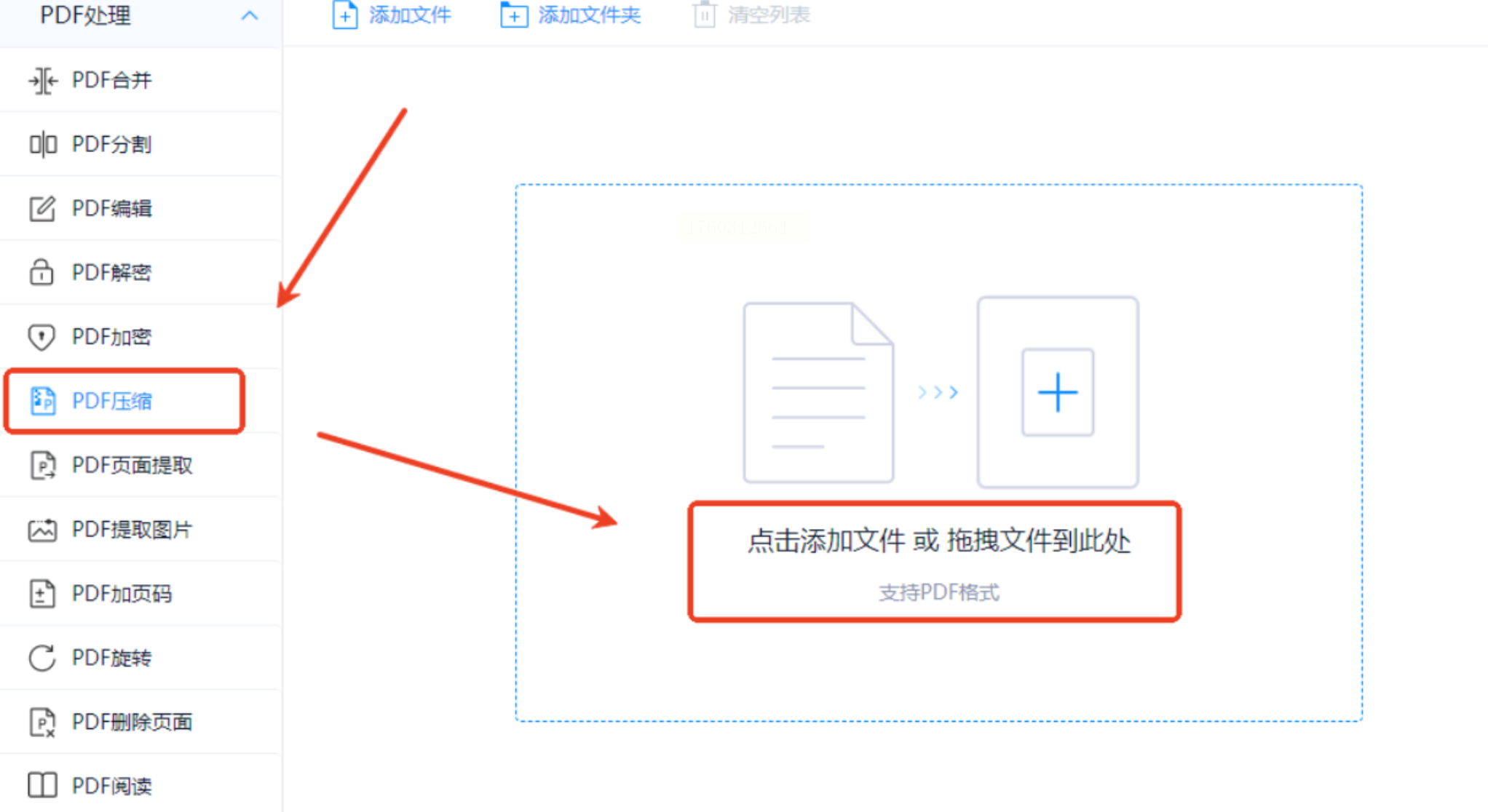 步骤二:点击“添加文件”,可导入单个或多个PDF文件,支持拖拽操作。