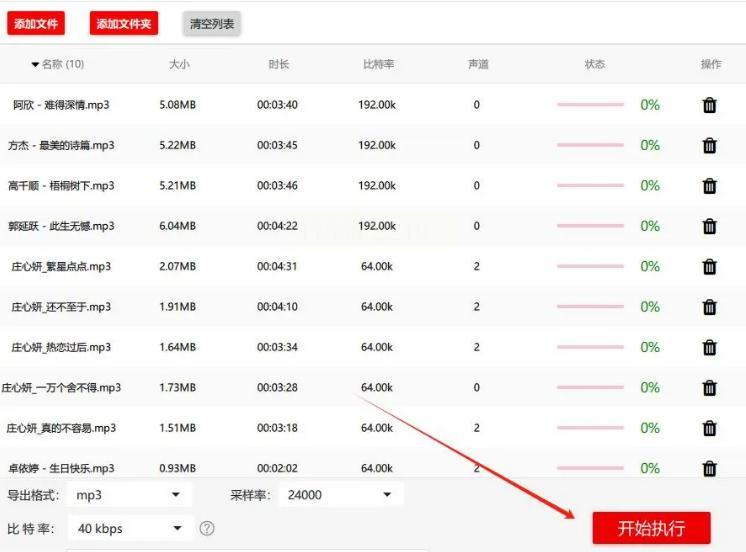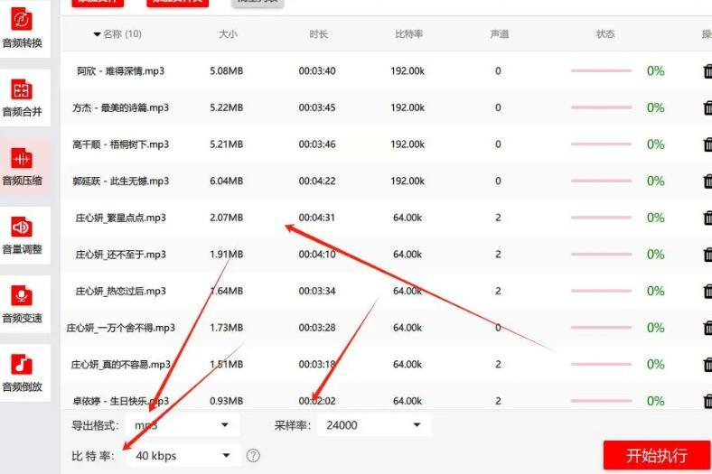 4. 开始执行:一切设置完毕,点击“开始执行”按钮,软件就开始自动压缩音频文件啦。