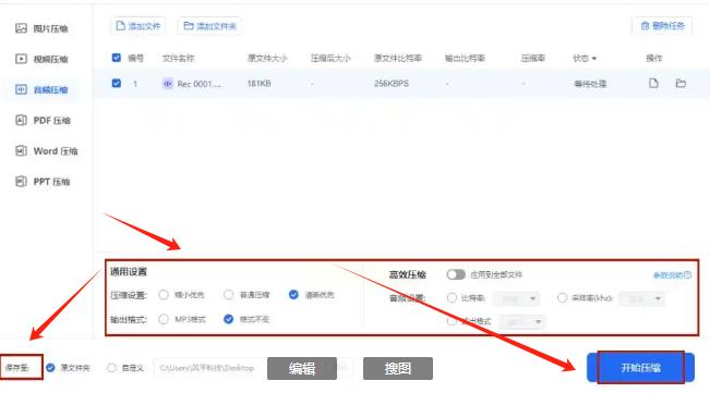 3. 设置压缩参数:根据自己的需求,调整下方的“采样率和比特率”。一般来说,降低采样率和比特率可以有效减少文件大小,但也要注意音质的影响,找到一个恰当的平衡点。