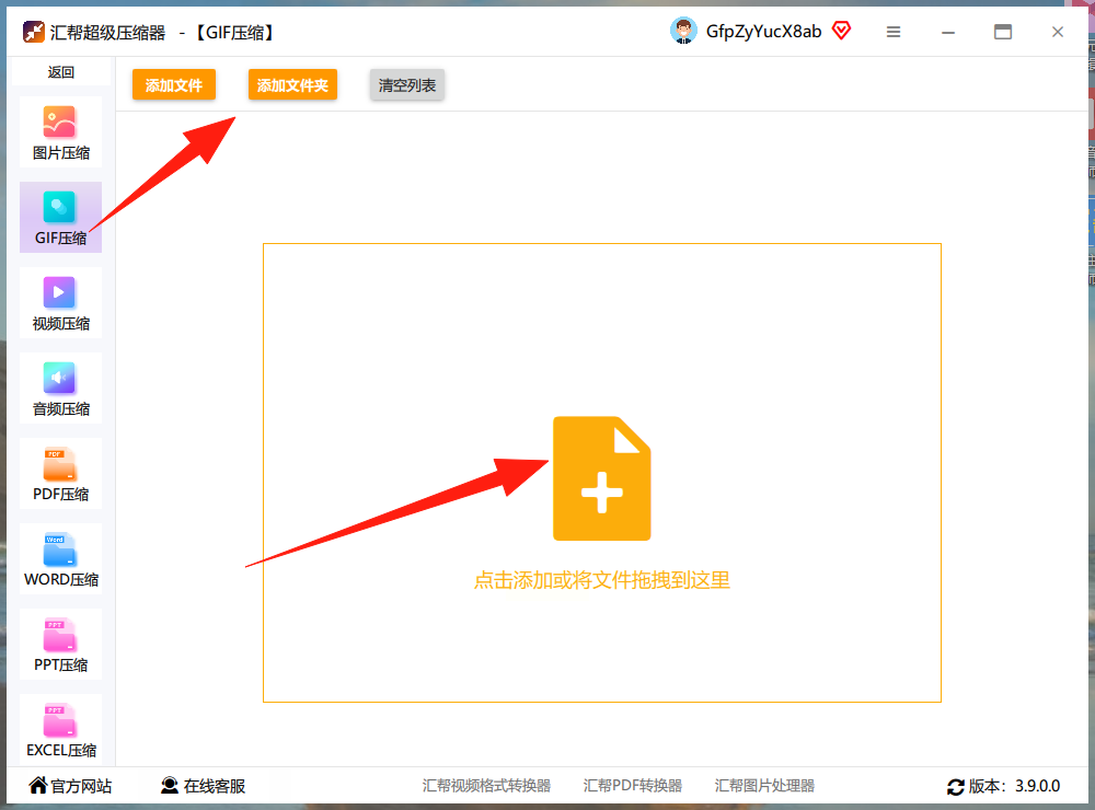 1. 点【GIF压缩】功能,把要压缩的文件拖进去