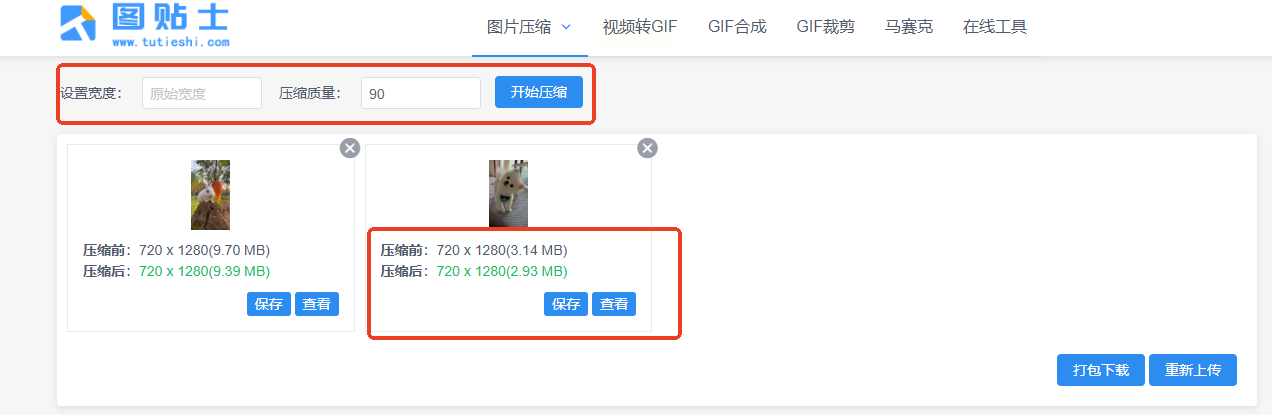 3. 宽度可以自己调,压缩质量拉到50以下会更小,但画质会有点损失