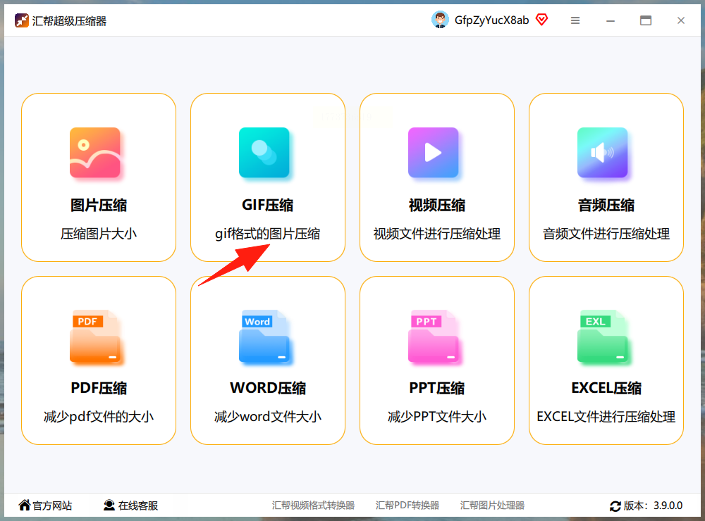 1. 选“GIF压缩”功能,上传文件