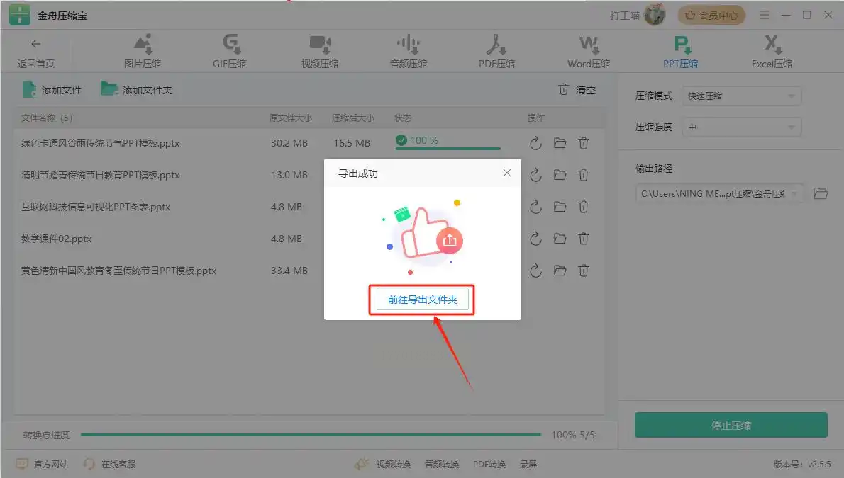 步骤一: 在电脑上安装并打开这类多功能压缩软件,在它的功能菜单里,定位到“PPT压缩”模块。