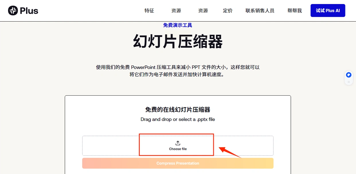 步骤一: 访问可靠的在线压缩网站,找到PPT压缩功能页。点击“选择文件”或上传按钮,从电脑中选取需要处理的PPT文件。