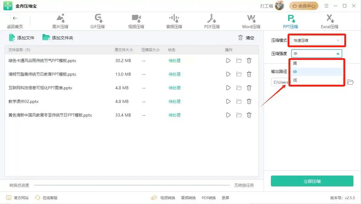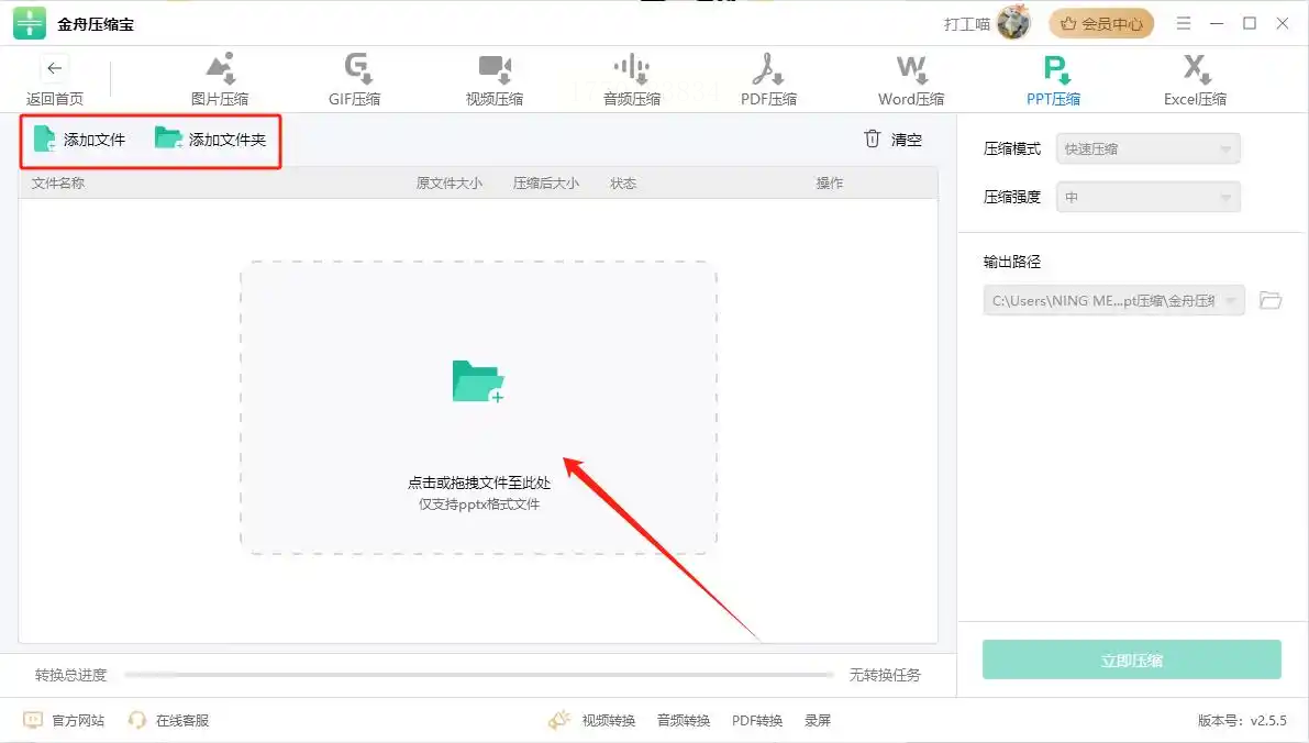 步骤二: 通过点击“添加文件”按钮,或者更便捷地将需要处理的PPT文件直接拖拽到软件窗口内,即可导入。大部分工具都支持一次性添加多个文件进行批量处理。