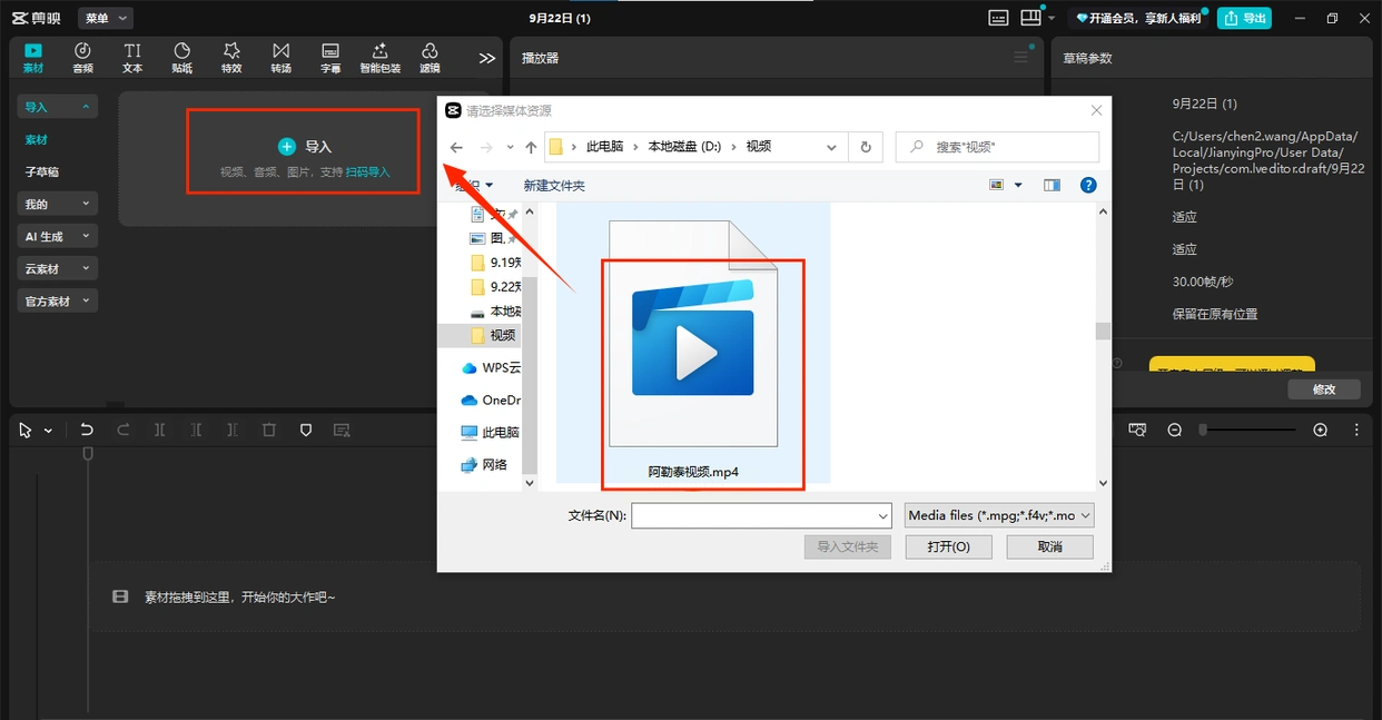 1. 导入视频:打开剪映APP或电脑端,点击首页"开始创作",通过左上角"导入"按钮选择本地视频(支持相册、文件管理等路径)。