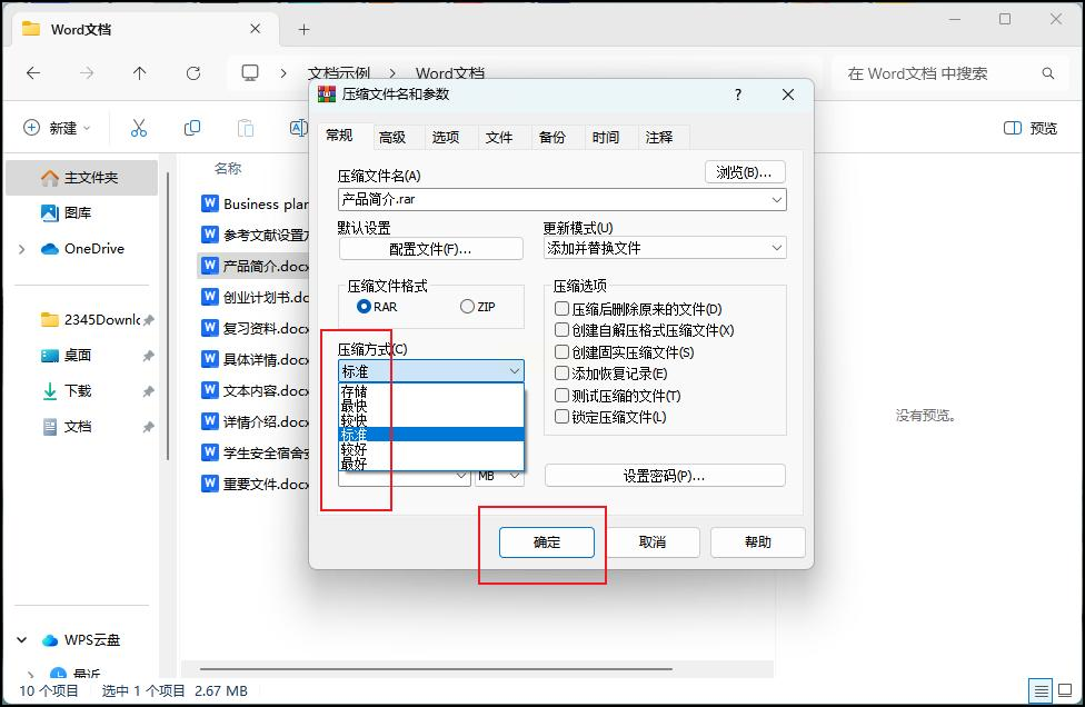 3. 在新窗口的压缩格式选ZIP,压缩方式选“标准”