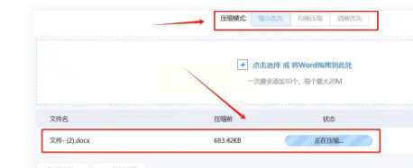 3. 在左下角压缩模式选“缩小优先”,想要更清晰就选第二个选项