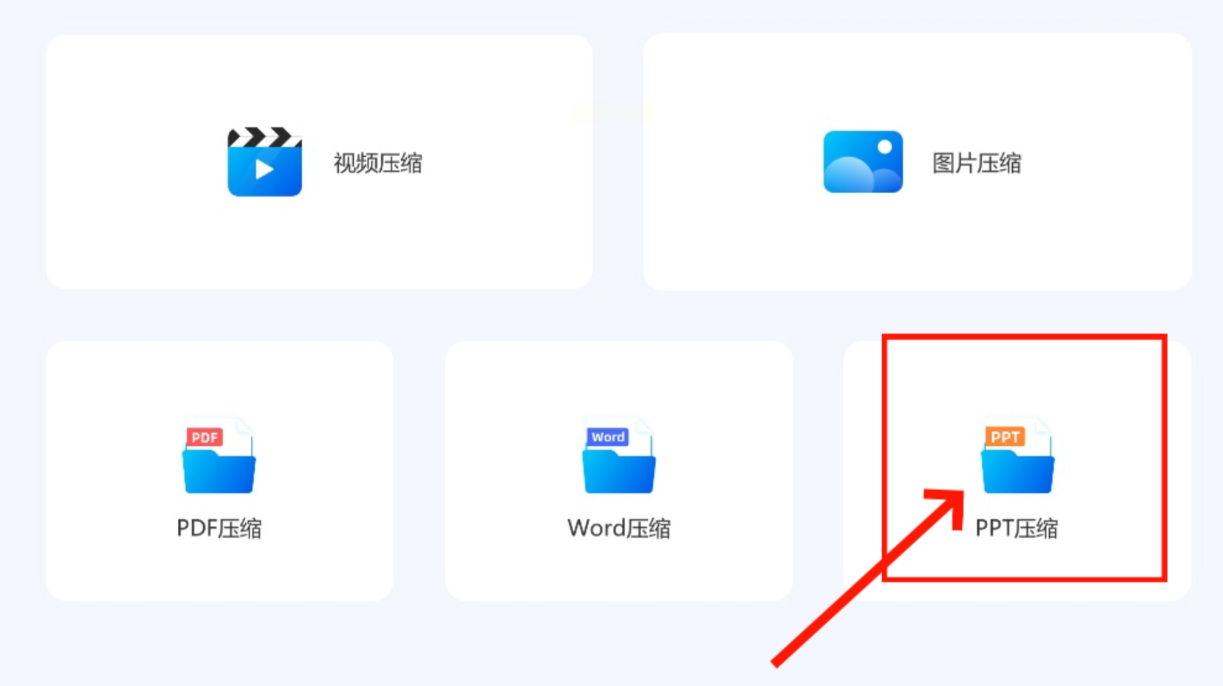 打开“达优压缩大师”软件,在首页的功能图标中,找到并点击 【PPT压缩】。