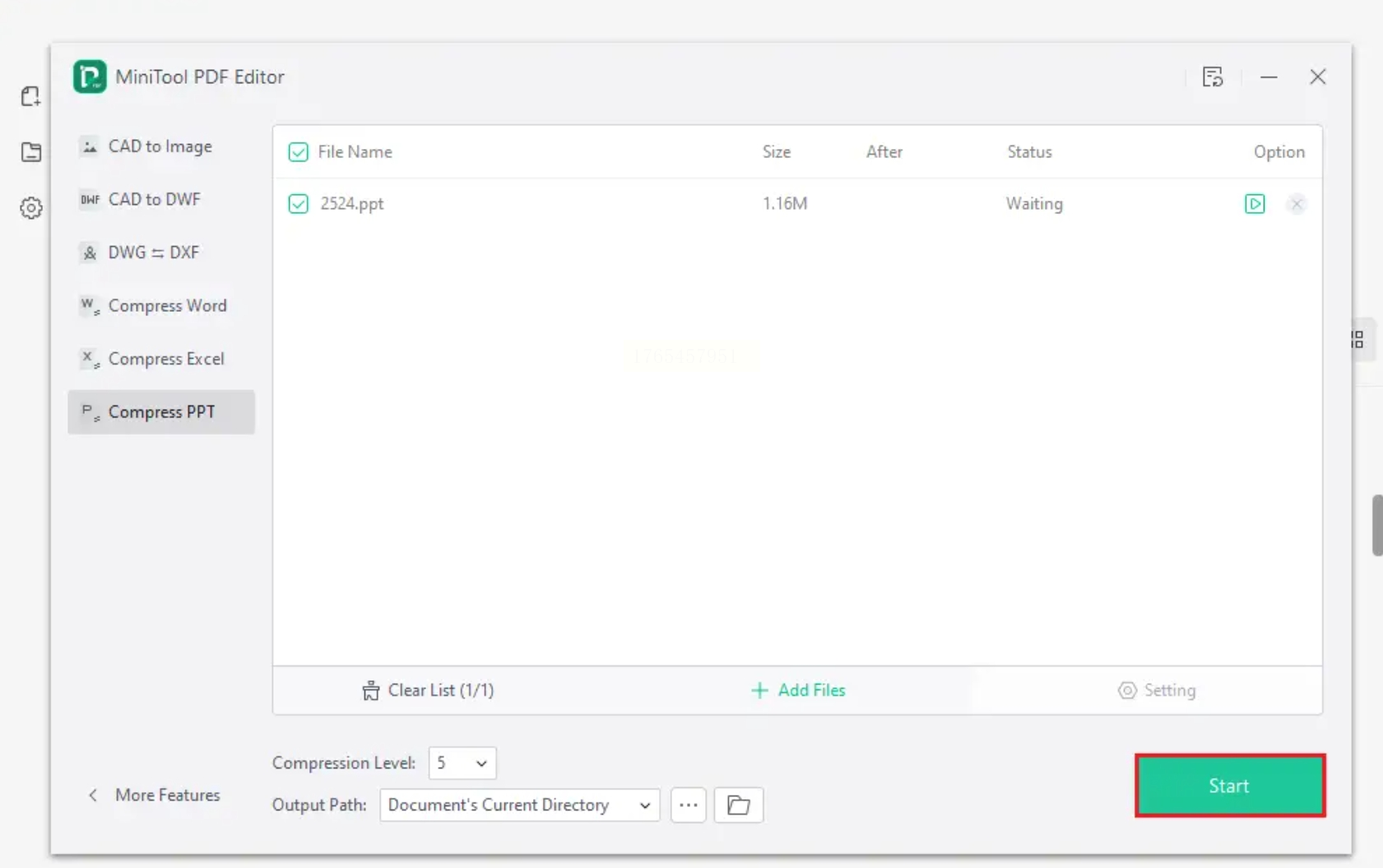 在左侧的功能列表中,找到并点击 【Compress PPT】(压缩PPT)选项。