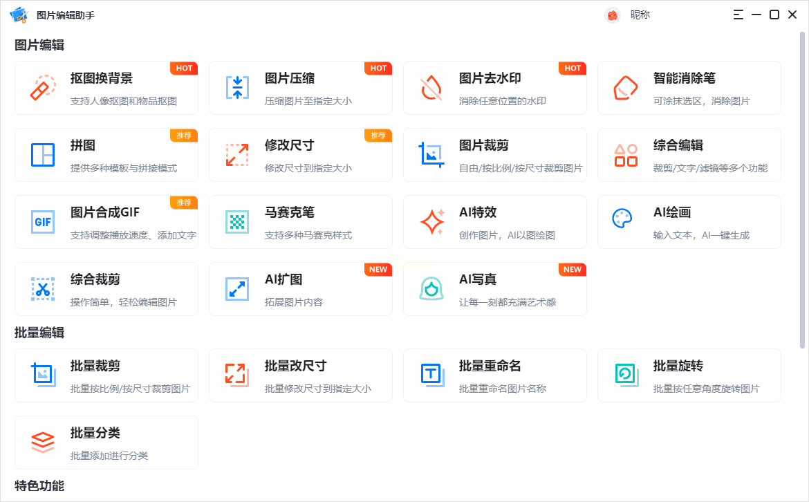 步骤一:启动软件,在主界面清晰的功能模块中,定位并选择“图片压缩”选项。该功能兼容JPG、PNG、BMP等多种主流图片格式,为后续操作奠定基础。