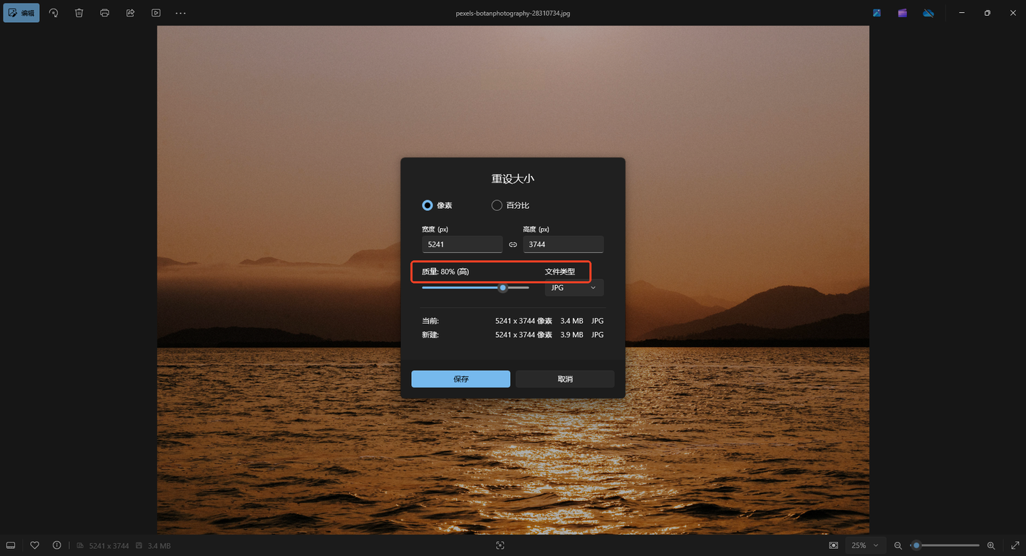 如果手头没有专业软件,且仅需快速压缩一两张图片,Windows系统自带的“照片”应用便是一个触手可及的轻量级解决方案。它的优势在于无需额外安装,操作极其简单。