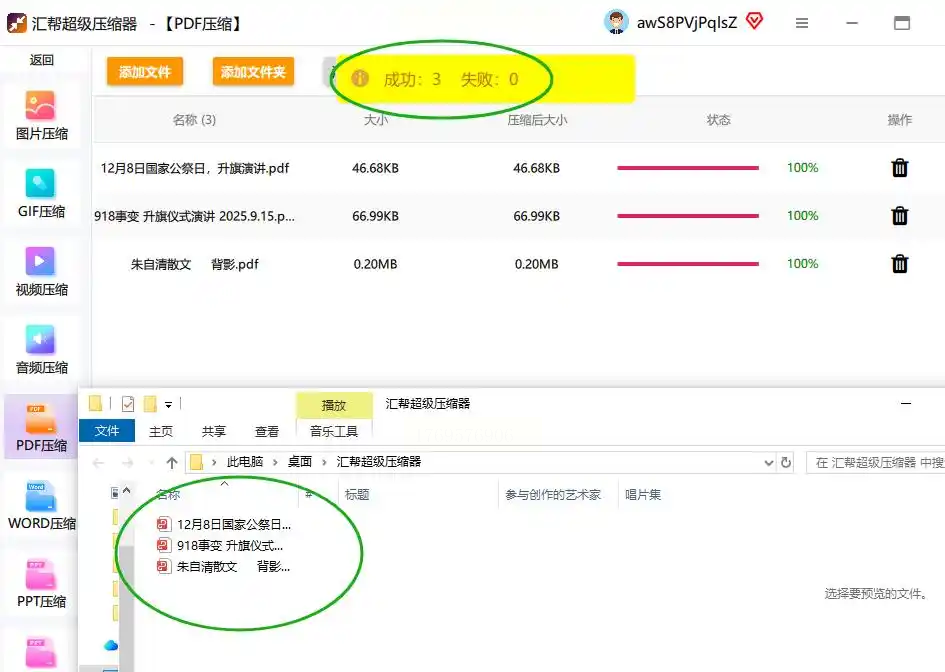 压缩完成后会弹窗提示“压缩成功”,你直接去软件设置的“输出文件夹”找文件(默认在软件同目录的“压缩后文件”文件夹)。最贴心的是原文件不会被覆盖,相当于“复制一份压缩版”,放心修改原文件~