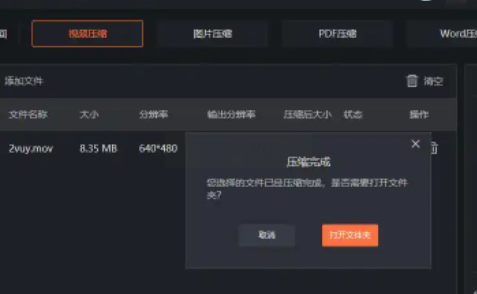 4. 预览与压缩:模板选择后点击“开始压缩”,软件会自动处理并生成新文件。压缩完成后,点击“查看文件”可直接预览画质,不满意可重新选择更高压缩比。
