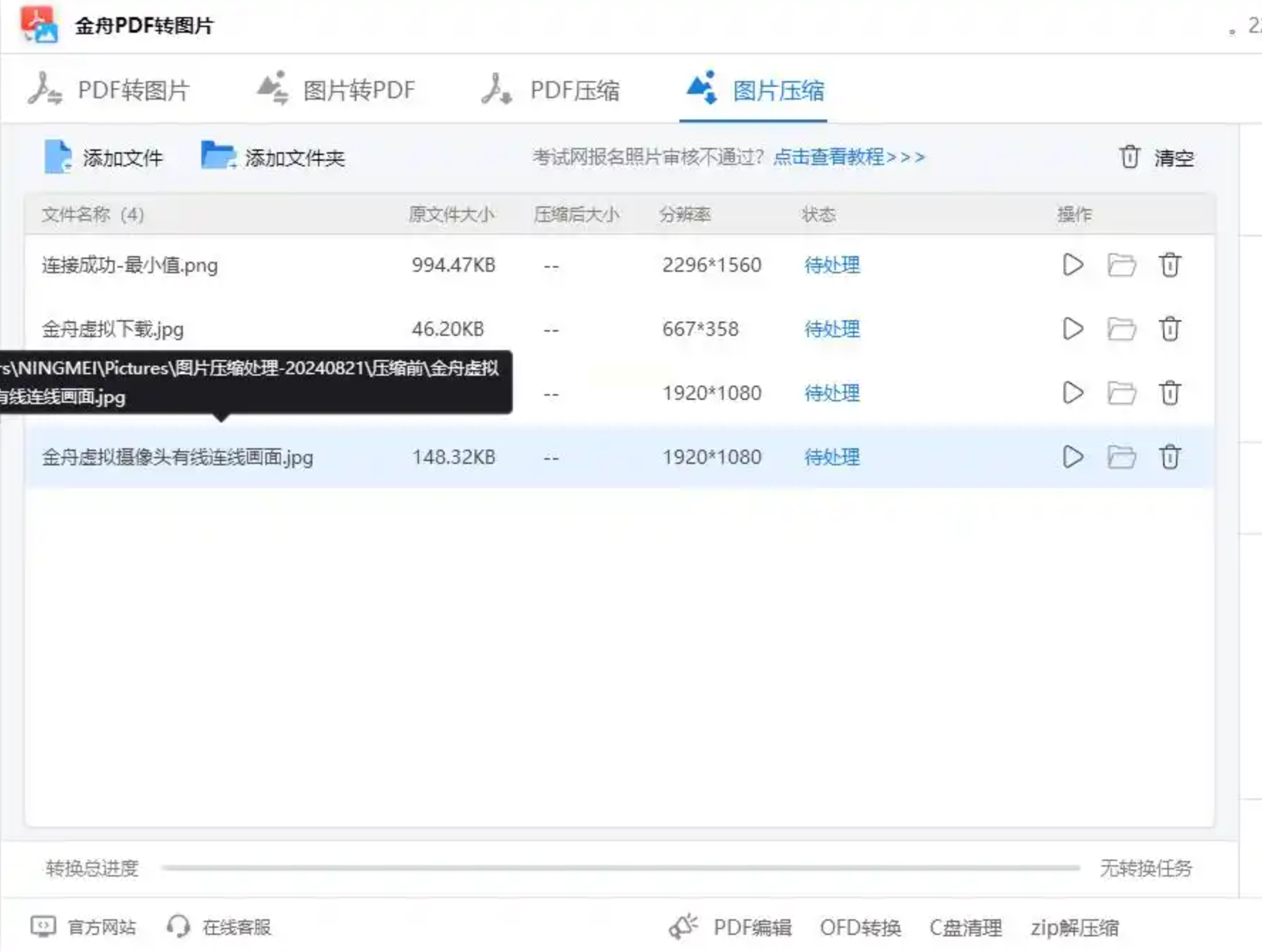 - 步骤六:点击"开始处理",软件会在后台完成压缩任务,状态栏显示实时进度