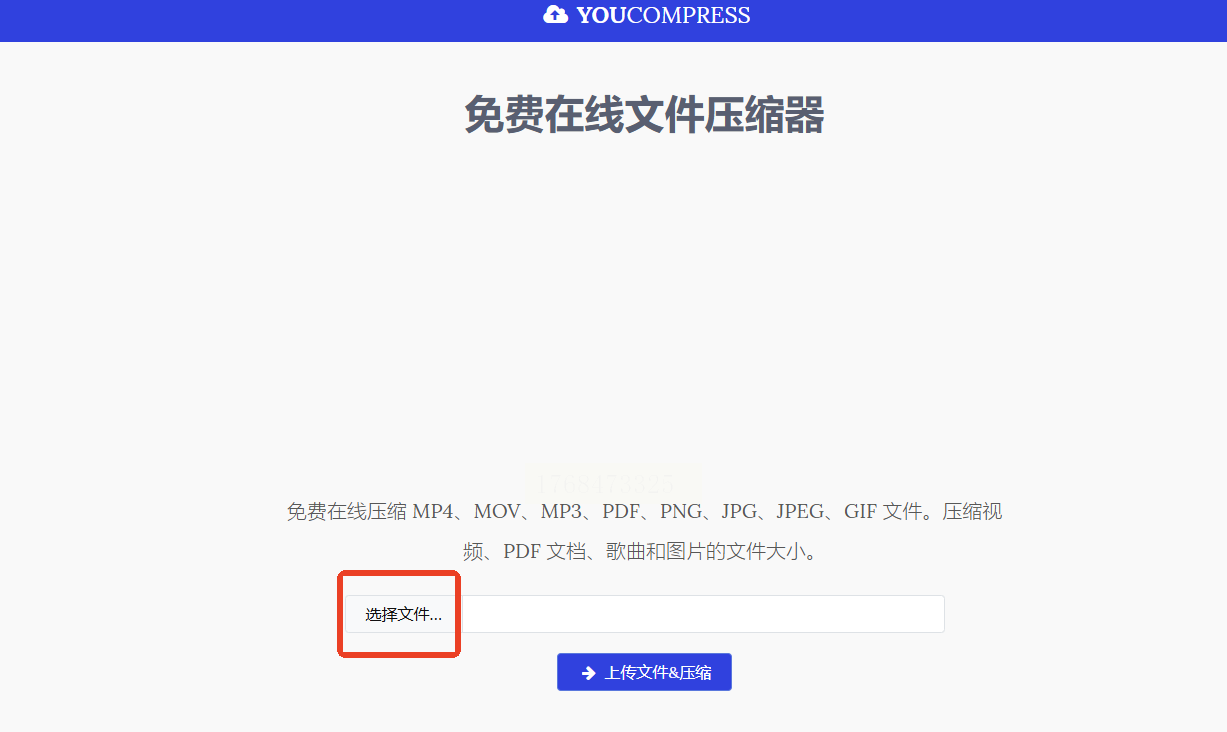 通过浏览器访问该在线压缩网站。点击页面上的“选择文件”按钮,从电脑中上传单个音频文件。平台承诺不添加水印。