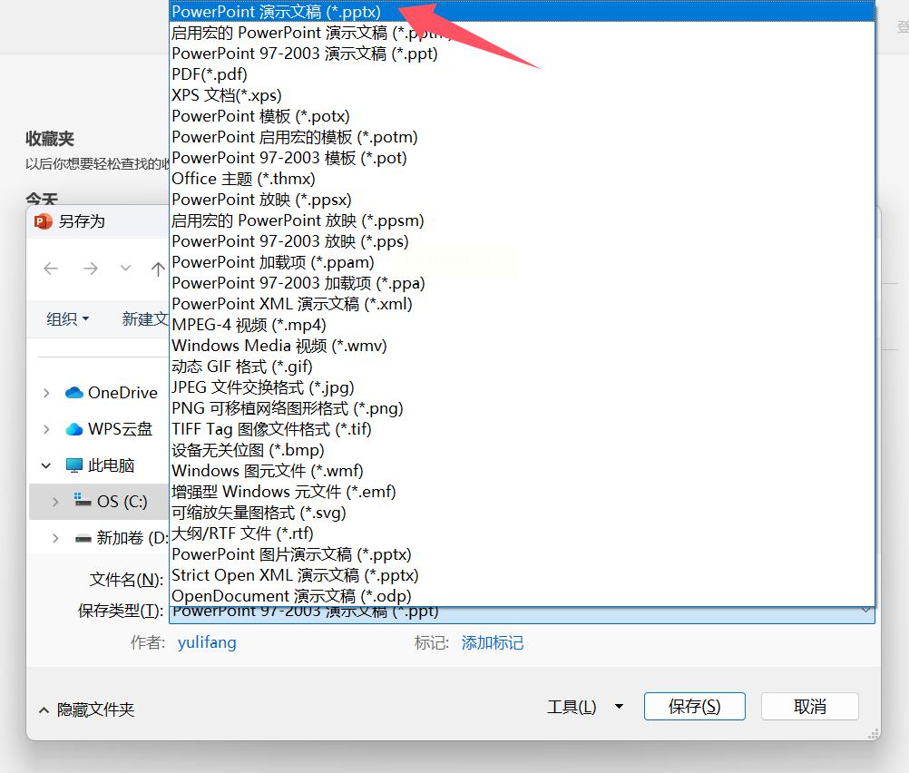 - 格式选“PowerPoint演示文稿(*.pptx)”(别选PDF,PDF无法保留动画);