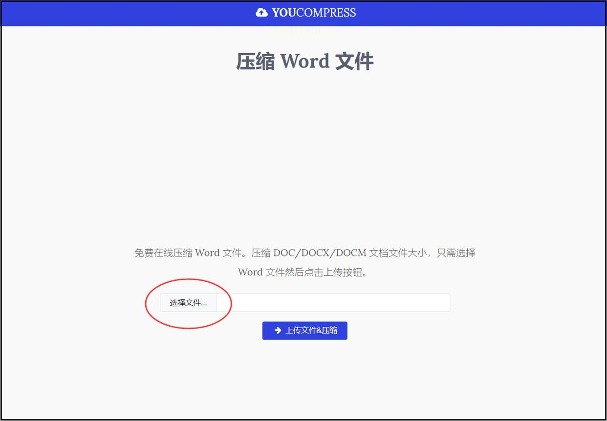2. 上传Word文档:点击页面中央的“选择文件”按钮,从本地文件夹中选择需要压缩的Word文件(支持. doc/.docx格式)。