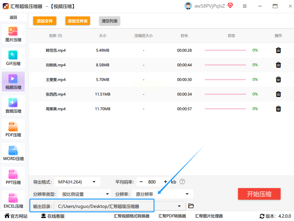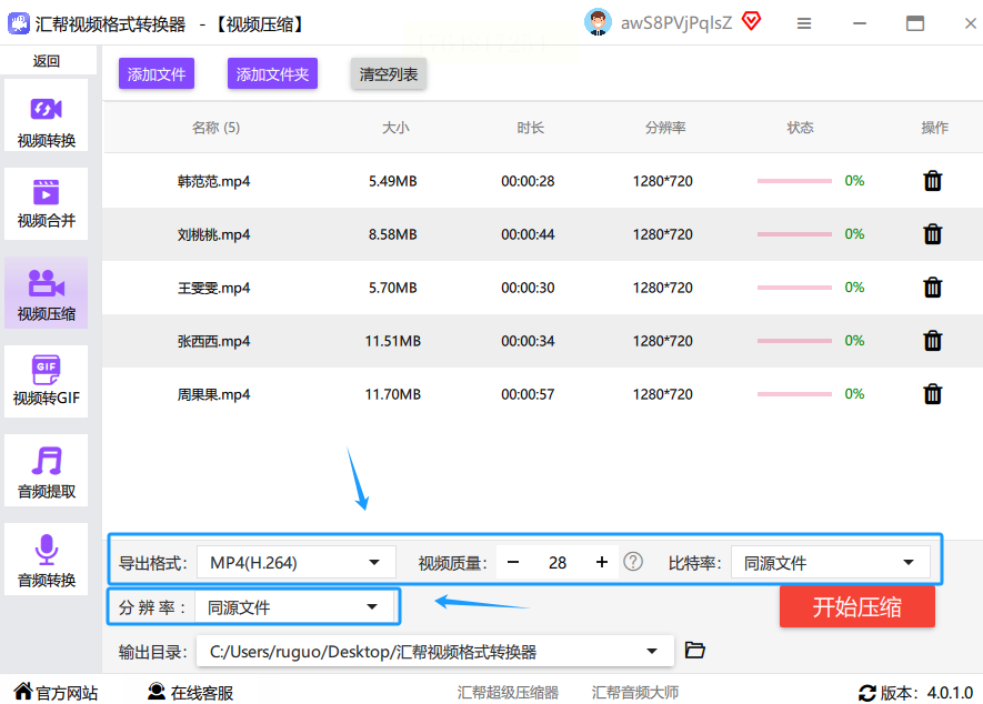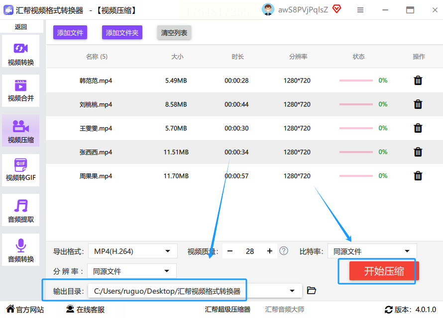 上面都设置妥了,就大胆地点击那个最大的 【开始压缩】 按钮吧。软件会按照你的设置,自动处理列表里的所有视频。这时候,你可以去倒杯水,休息一下。