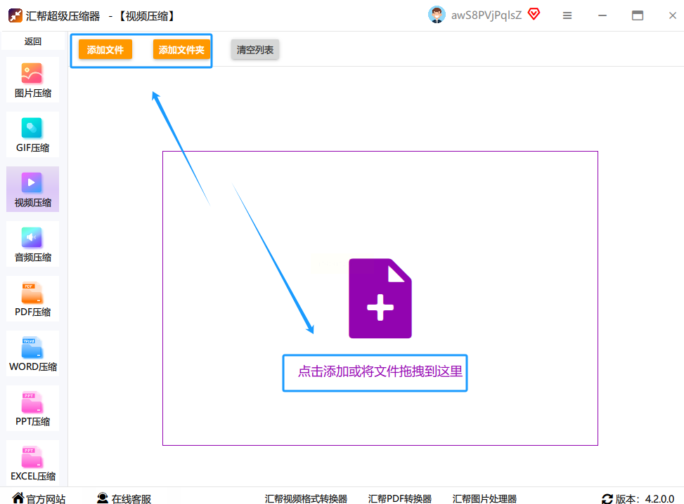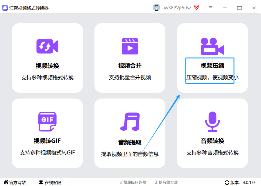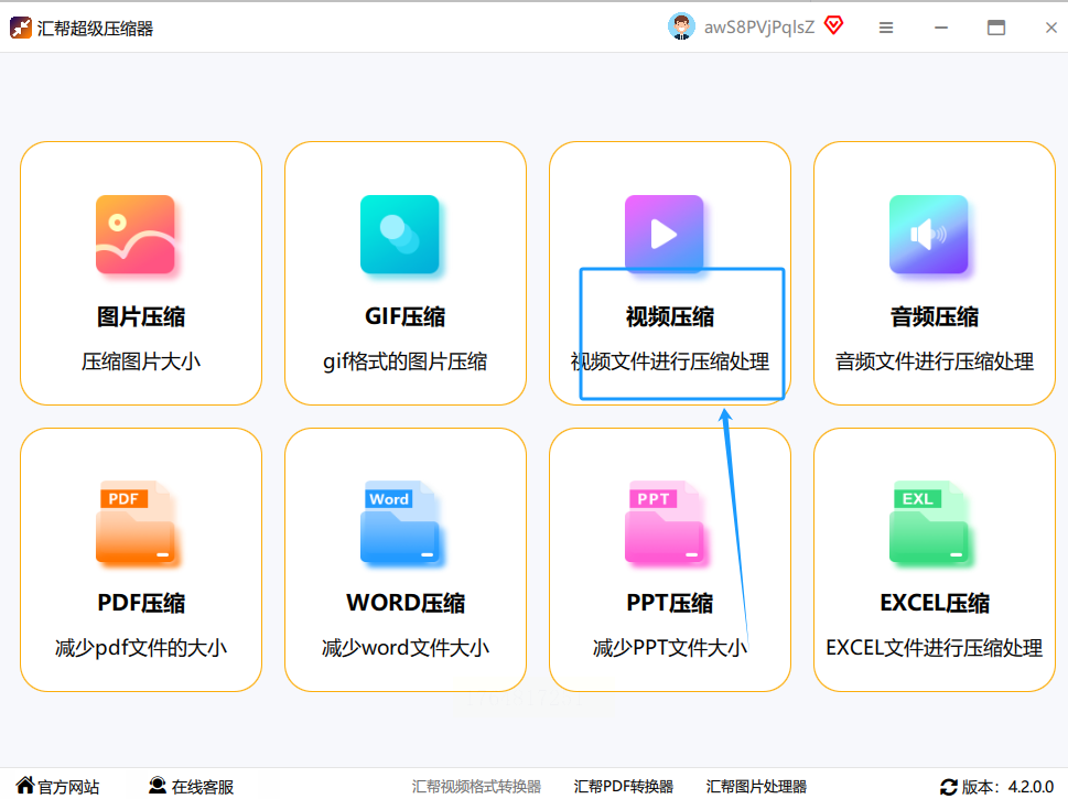 把软件运行起来,在主界面你会看到好几个选项。咱们这次的目标明确,就直接点那个 【视频压缩】 功能。点进去,就来到了专门的工作页面。