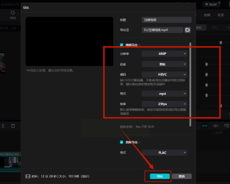 2. 把分辨率大幅度调低。比如,4K视频直接降到720P,甚至480P。别心疼,我们的目标就是极限瘦身。