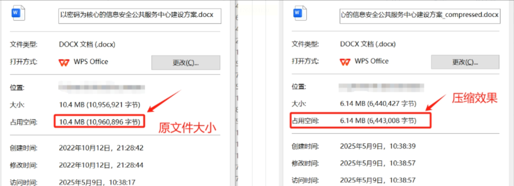 5. 验证效果:对比原文件与压缩后文件的属性(右键-属性),确认体积缩小且内容可正常打开。