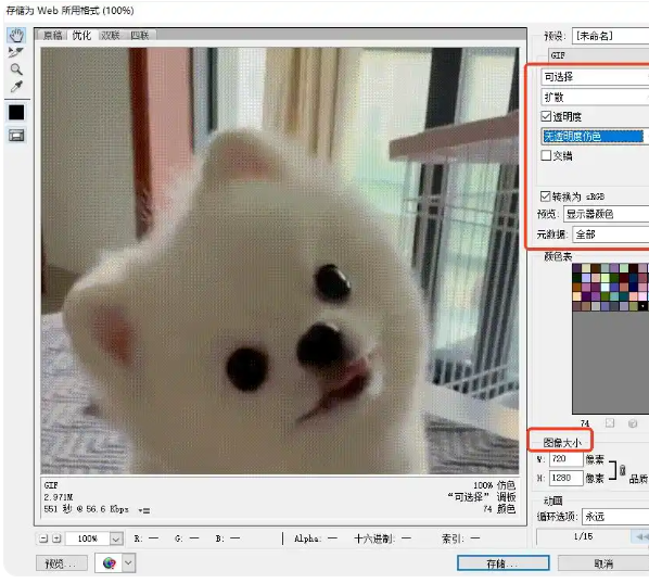 4. 根据需要修改输出尺寸,保持宽高比可避免画面变形