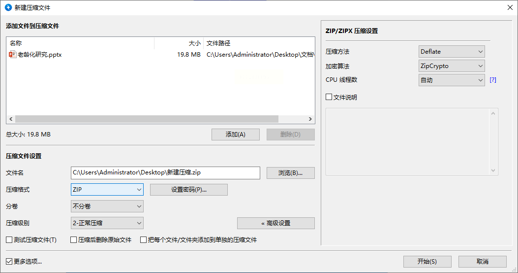 3. 保存路径改到桌面,压缩时会弹出进度条,等10秒就能拿到压缩包
