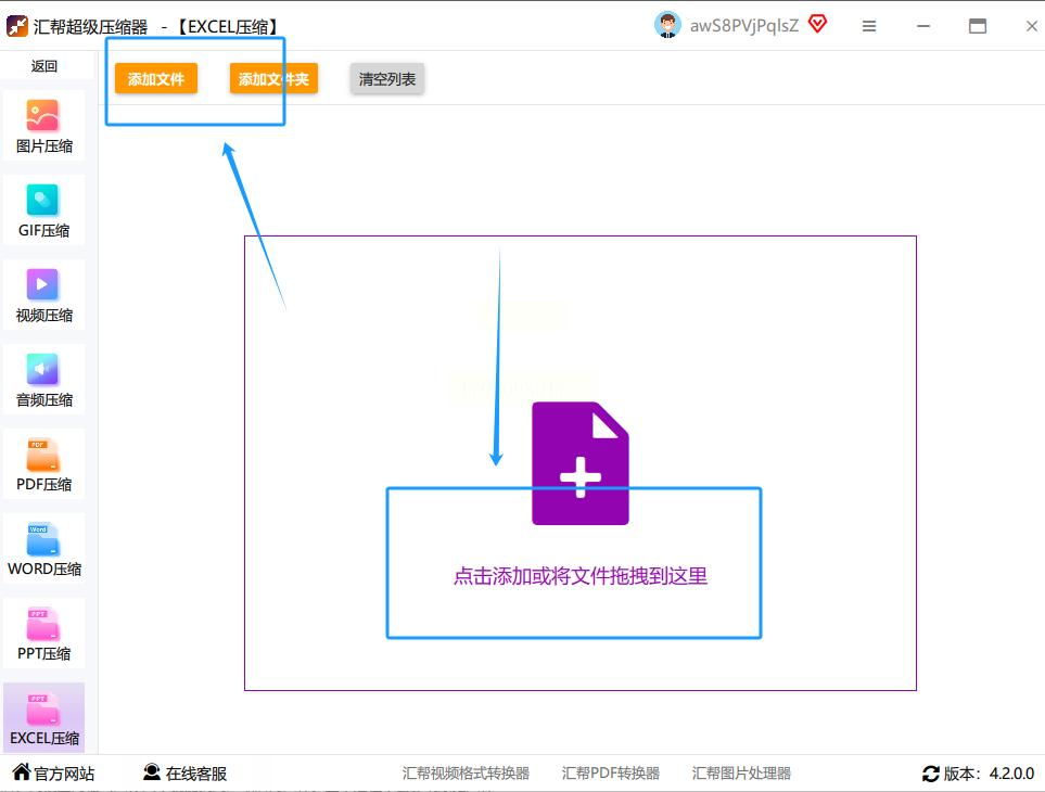 添加文件超简单!最方便的是拖拽法:直接用鼠标选中要压缩的Excel文件,拖到软件窗口里,"嗖"的一下就进去了。要是想多选文件,按住Ctrl键一个个点也行,或者点"添加文件"按钮,在文件夹里批量选。这步最贴心的是支持同时加好几十个文件,再也不用一个个点了,简直是懒人福音!